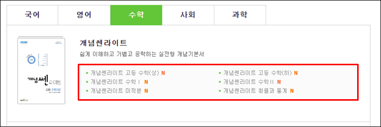2. 개념쎈라이트 수학영역 문제집 둘러보기