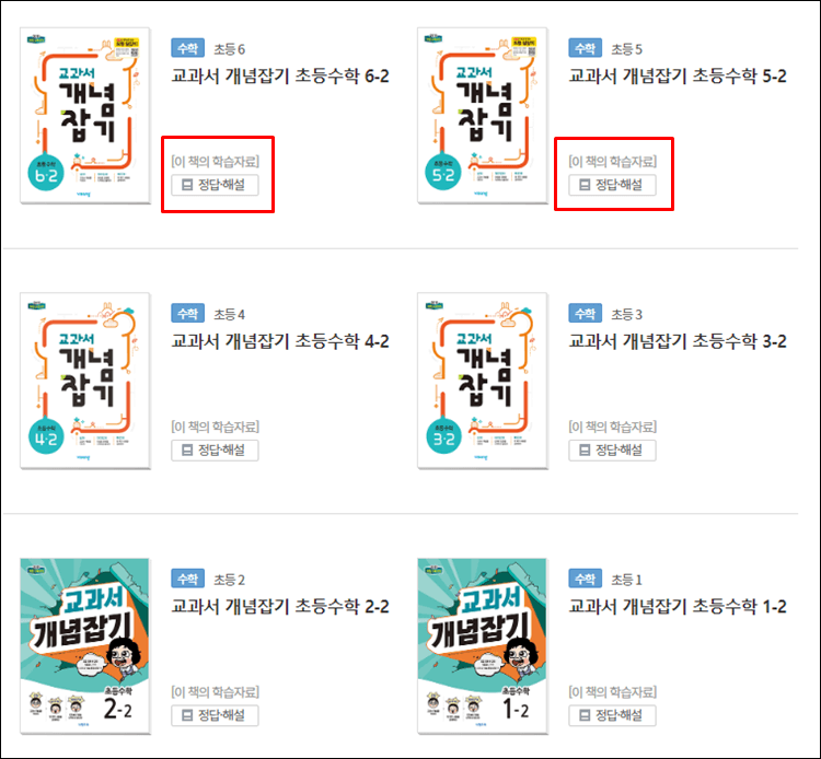 교과서 개념잡기 초등수학 문제집 및 답지 PDF 바로가기