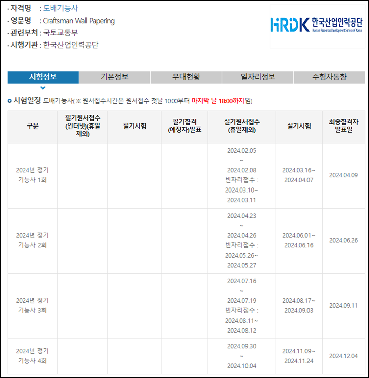 도배기능사 시험일정 및 기출문제 바로가기