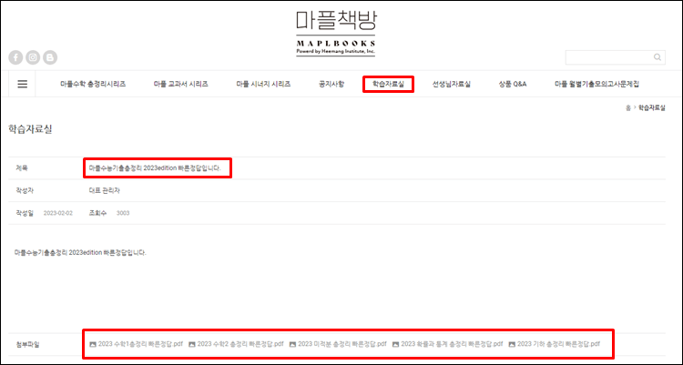 오늘은 마플수학 총정리시리즈의 답지를 PDF로 받는 법에 대해 알아보았습니다.