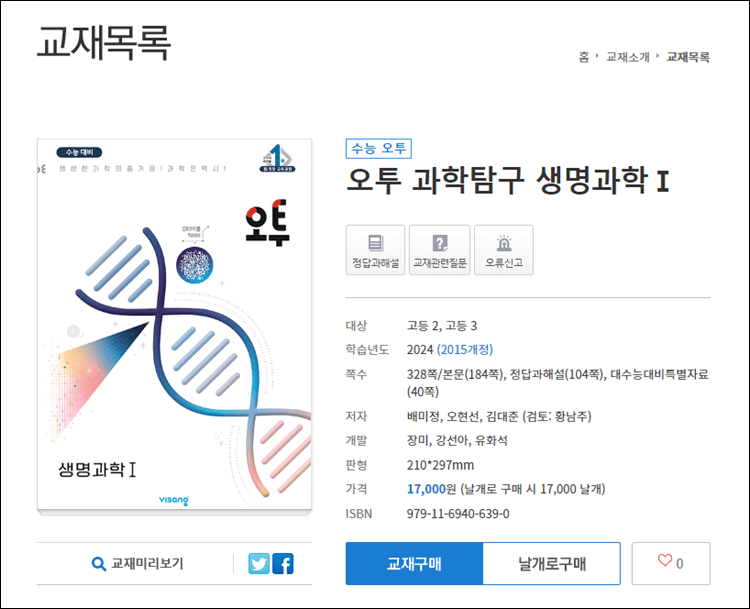 오늘은 오투 생명과학 1의 문제집과 답지를 살펴보았습니다.