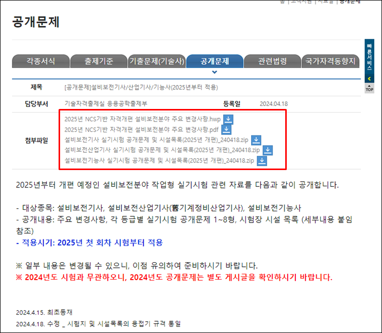 설비보전기사는 실기문제에 한해 큐넷 홈페이지에 공개를 하고 있으며 최근 NCS기반 자격개편으로 주요 변경사항도 꼭 확인해보아야 합니다.