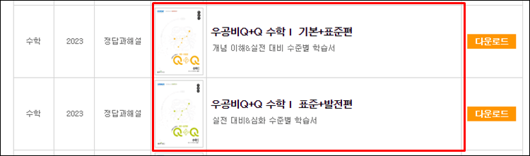 수학 1 기본 표준, 발전 신사고 우공비 Q+Q 답지 다운로드