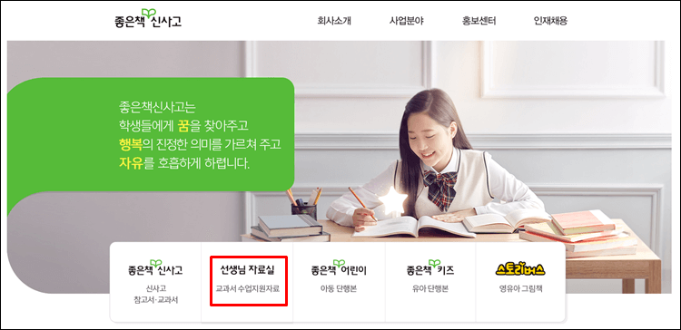 신사고 홈페이지를 방문하시면 아래와 같이 중간에 선생님 자료실이 있는 것을 보실 수 있습니다.