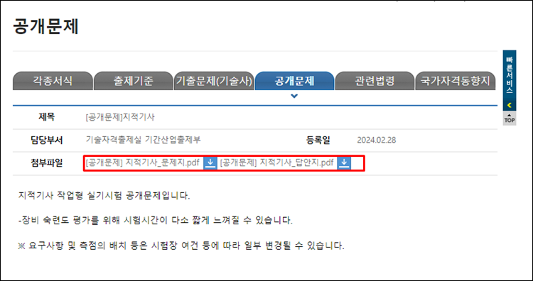 공개문제는 현재 큐넷 자료실에서 볼 수 있으며, 아래와 같이 다운로드도 가능합니다.