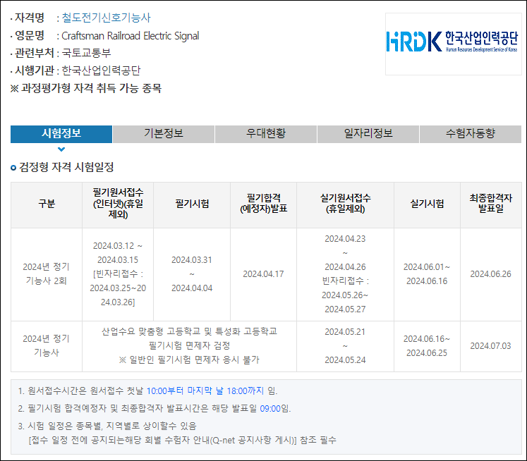 철도전기신호기능사의 시험일정은 홈페이지에서 확인이 가능한데, 1년에 2회를 보고 있습니다.