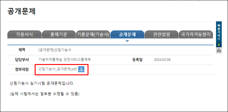 2024 산림기능사 시험일정 및 공개문제 다운로드