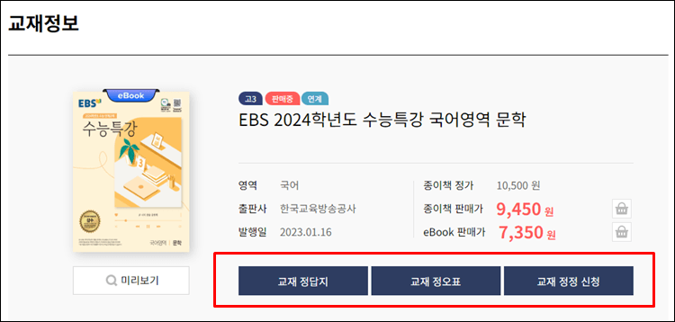 해당 문제집을 구매하실 수도 있고, 각각의 영역마다 정답지와 정오표를 받으실 수 있습니다.