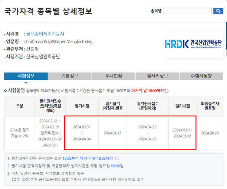 1. 펄프종이제조기능사 시험일정 바로가기