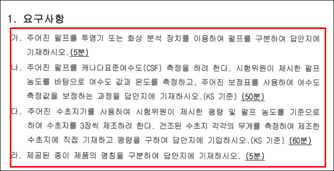 2. 펄프종이제조기능사 공개문제 알아보기